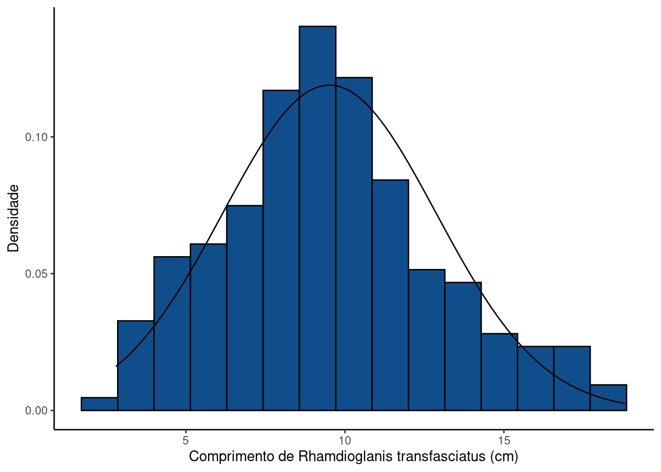 labs(x = 'Comprimento de Rhamdioglanis transfasciatus (cm)',