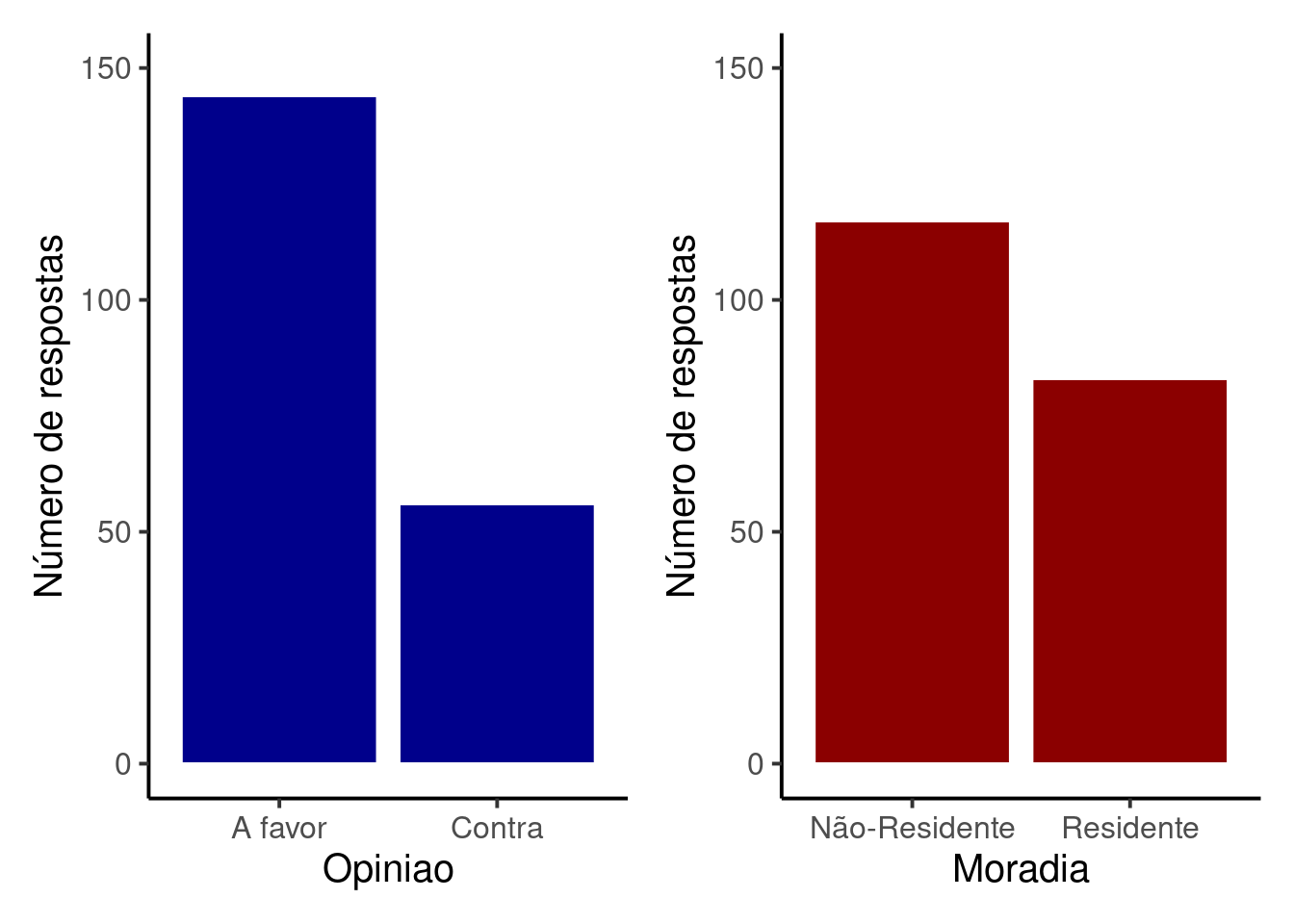 Das \(200\) respostas tivemos \(144\) pessoas A favor (\(72\%\)) e \(56\) pessoas Contra (\(28\%\)).