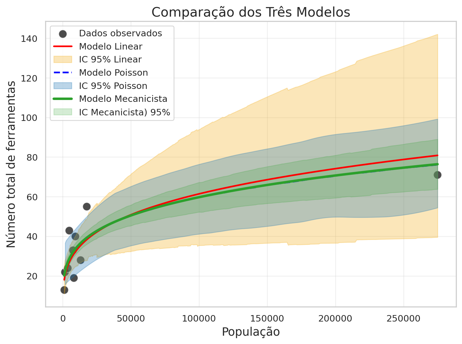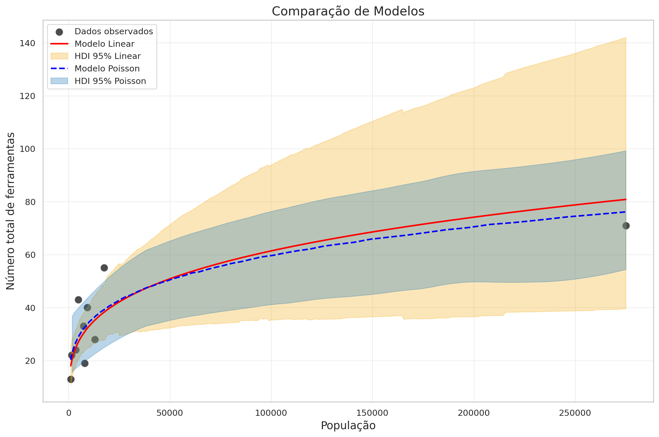 hdi_scientific = az.hdi(pred_samples, hdi_prob=0.89)5 Comparação dos Três Modelos