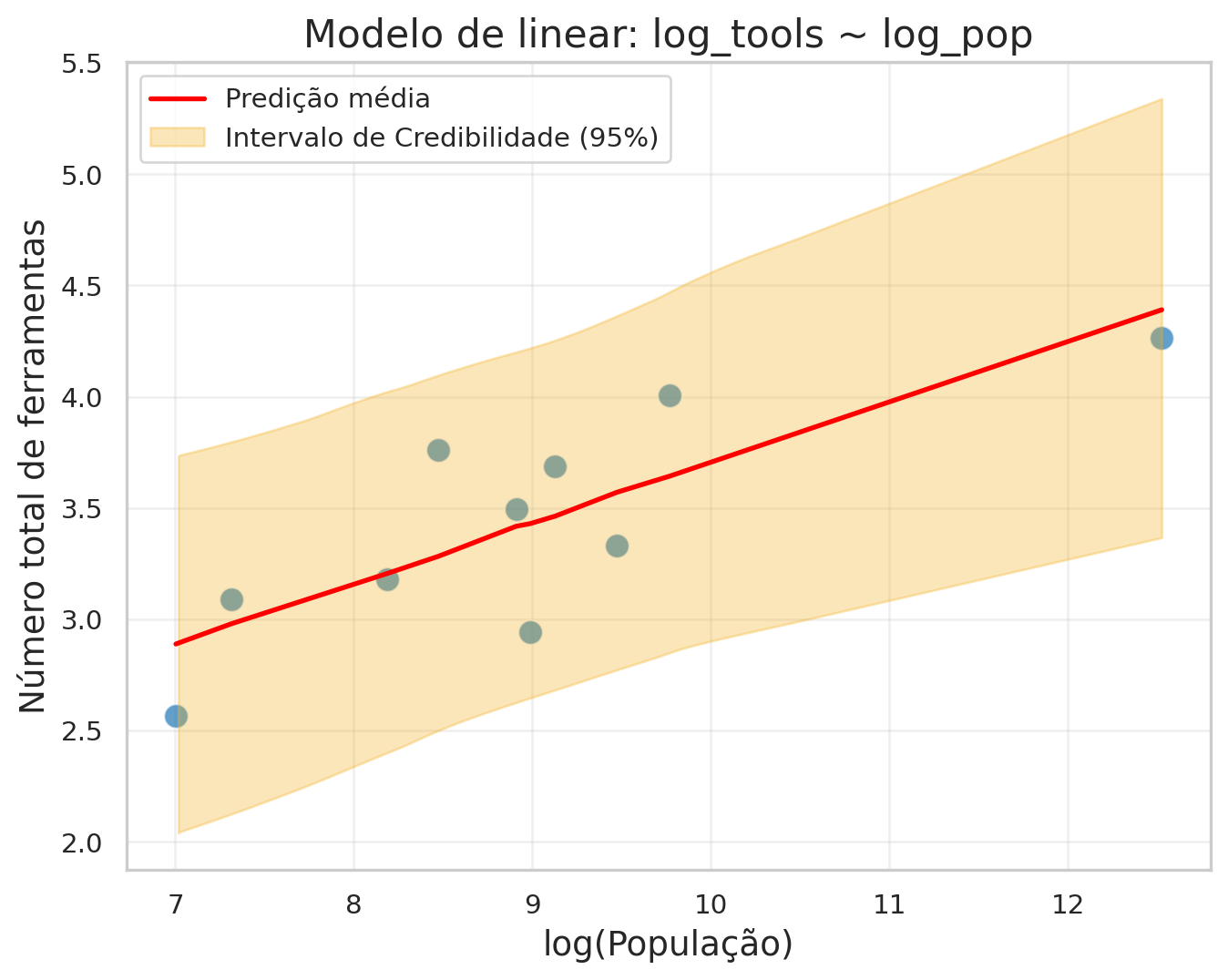 fill_kwargs={'alpha': 0.3, 'label': 'Intervalo de Credibilidade (95%)'}
