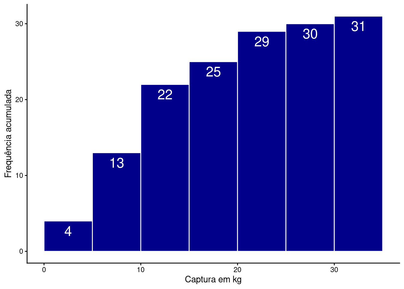 labs(x = 'Captura em kg', y = 'Frequência acumulada') +
