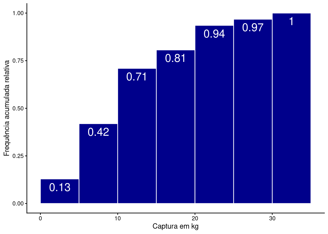 labs(x = 'Captura em kg', y = 'Frequência acumulada relativa') +