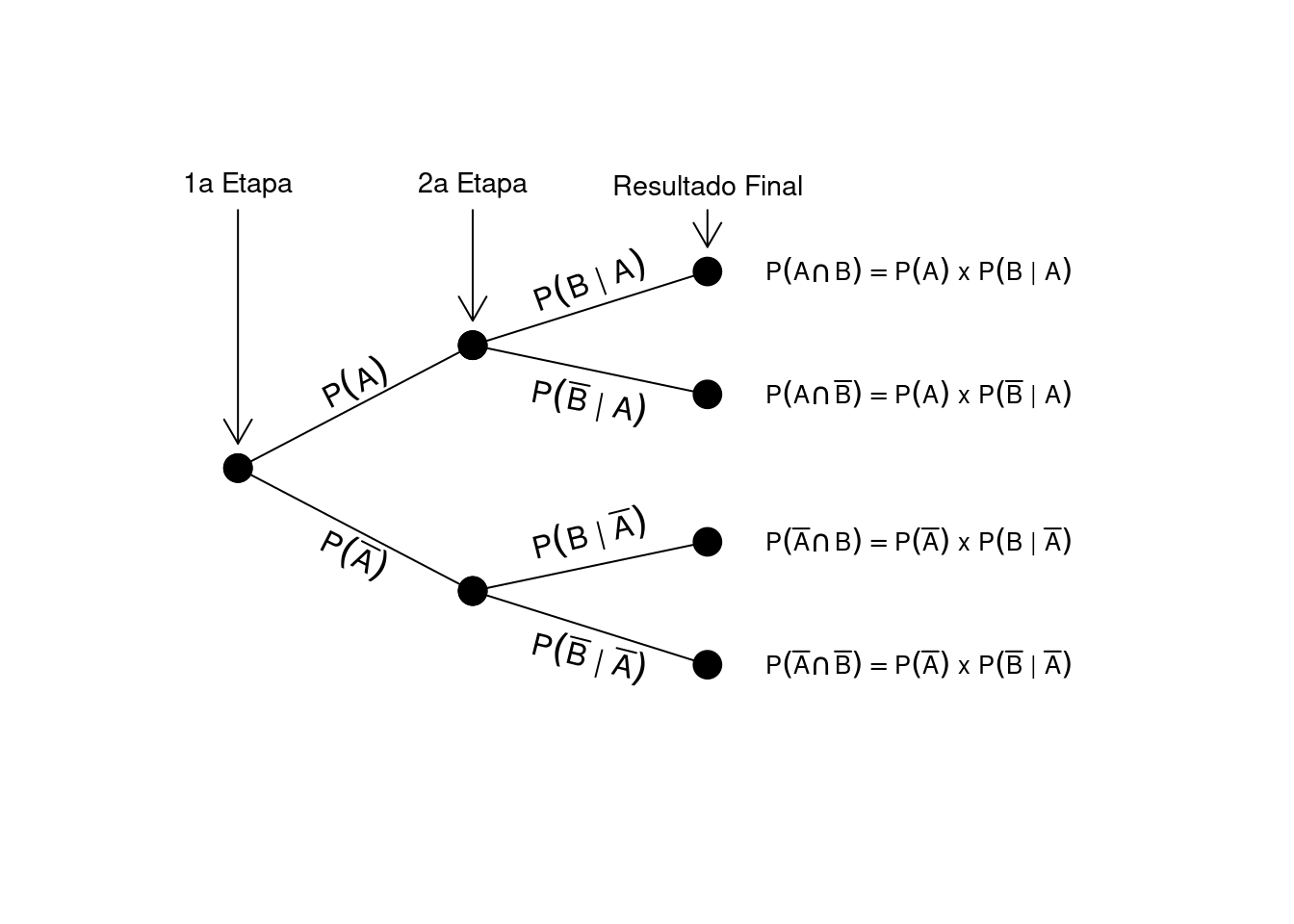 Podemos organizar essas probabilidades em um diagrama de árvore: