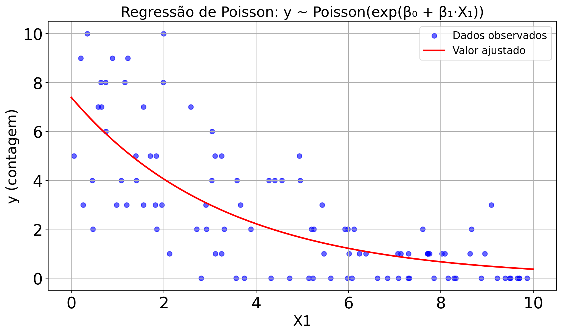 # Função de ligação log: log(λ) = μ = Intercept + beta * X