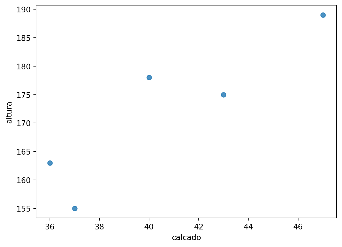 Os dados observados, sugere que um modelo linear é razoável se buscamos prever a altura de uma passoal adultra como função do número do calçado o que justifica a implementação de um modelo de regressão linear simples.