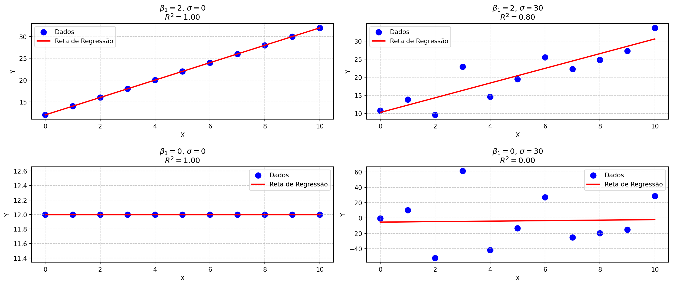 A qualidade do ajuste pode ser determinada pelo coeficiente de determinação (\(R^2\)), um índice que varia entre 0 e 1.