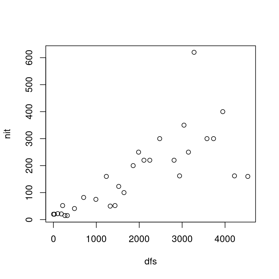 plot(nit ~ dfs, data = ambiente,