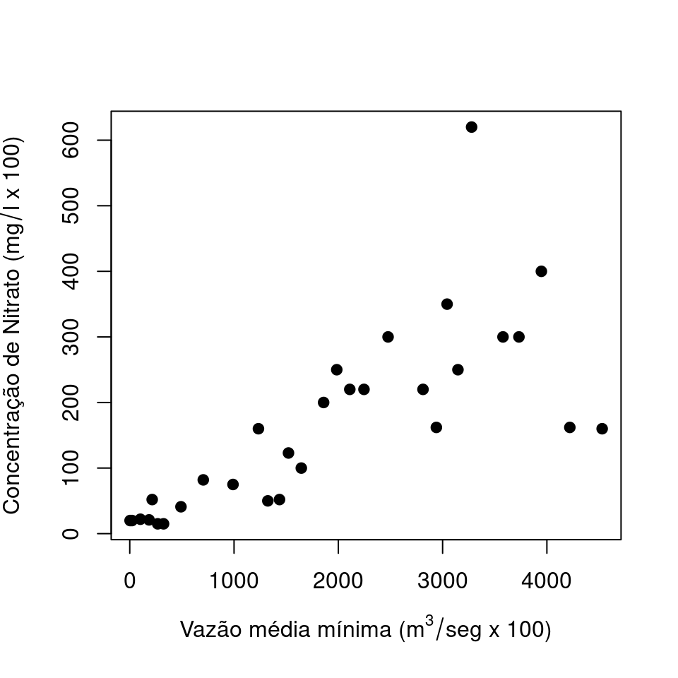 xlab = "Nitrato", ylab = "Vazão")