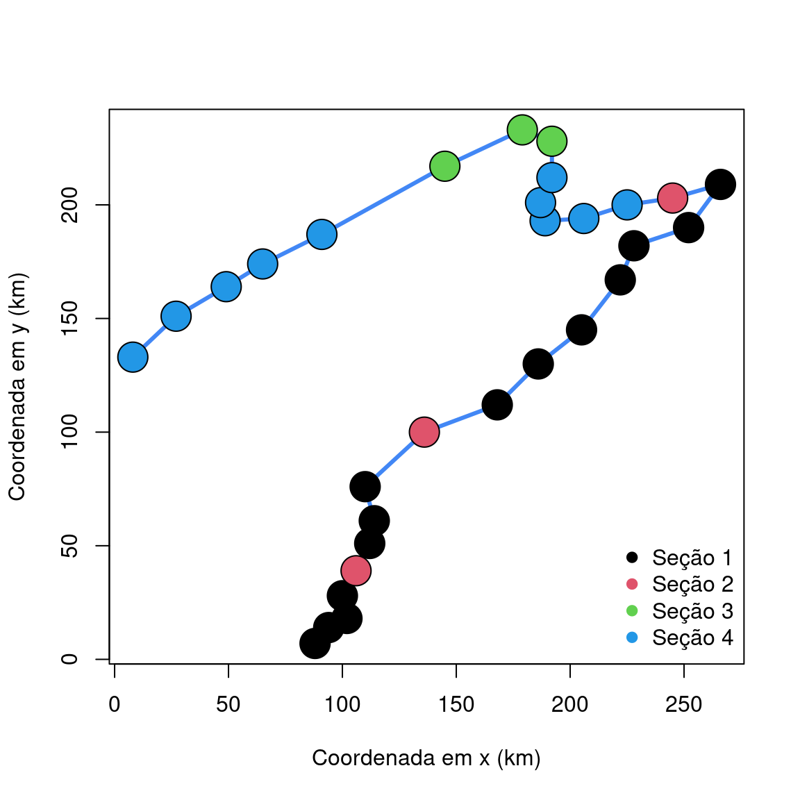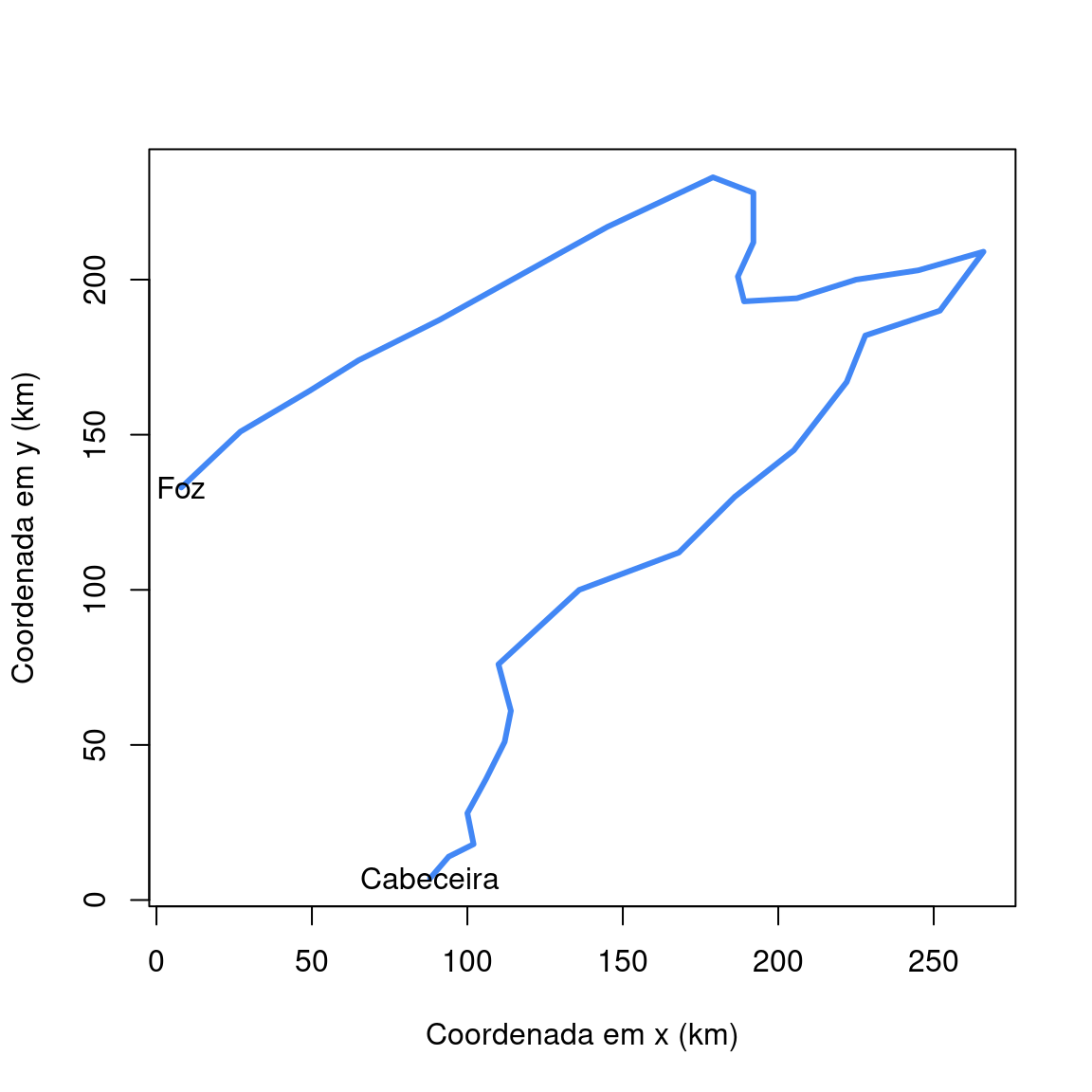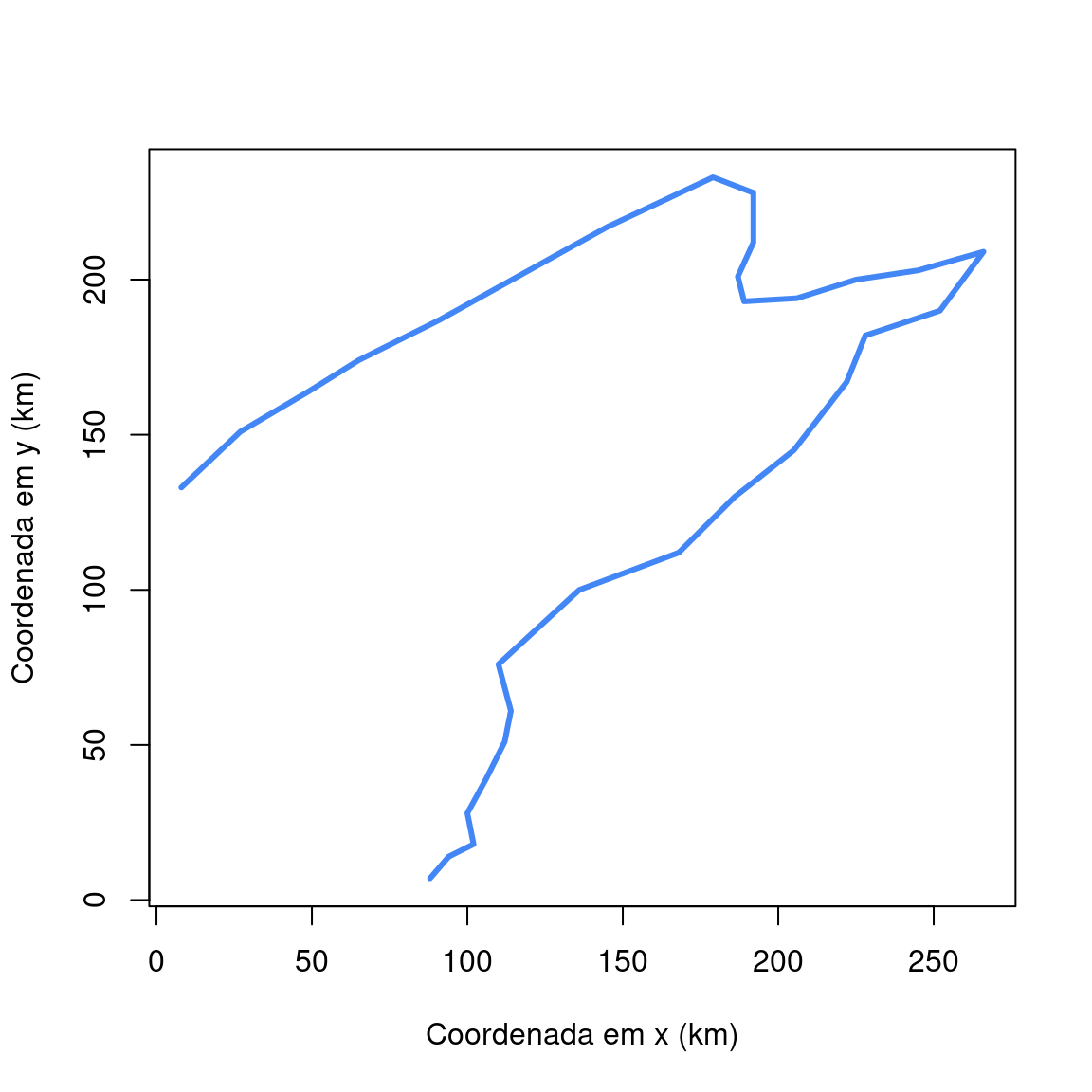 ylab = "Coordenada em y (km)",