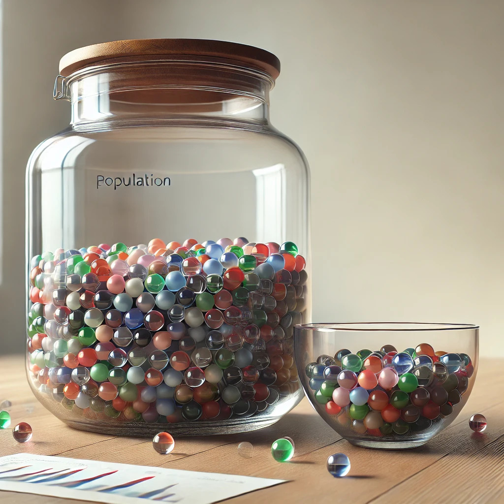 Descreve populações e amostras, abordando a distinção entre parâmetros populacionais e estimadores amostrais.