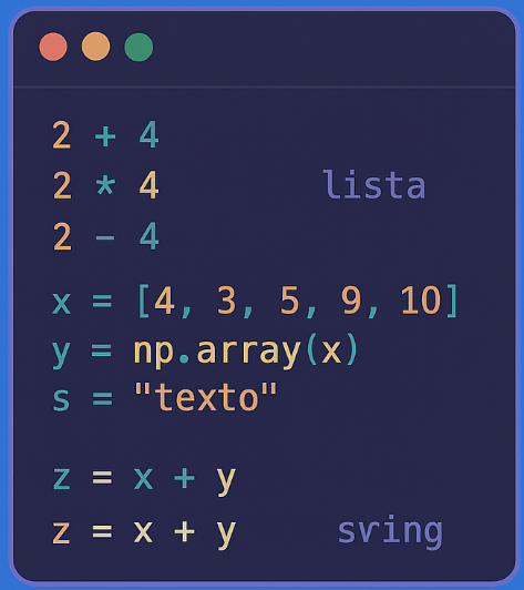 Estrutura da linguagem Python, incluindo operações básicas, tipos de objetos (listas, arrays, strings, dicionários) e sintaxe principal.